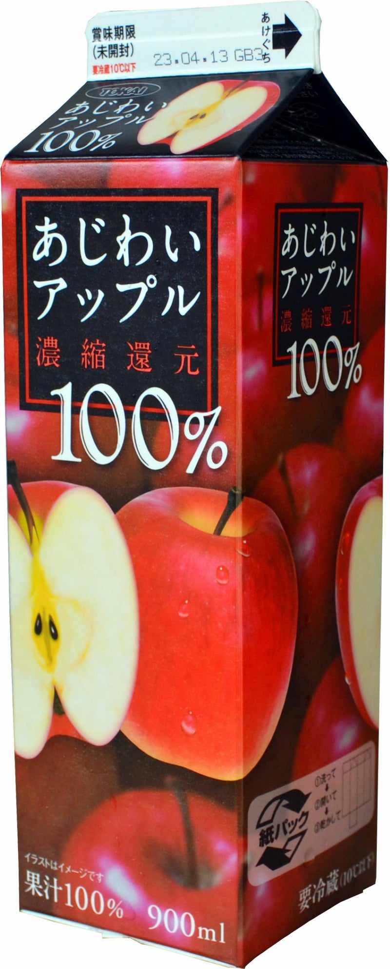 甘さすっきりのクリアなアップルジュース。飽きのこない美味しさが特徴です。 容量 900ml 製造者 東海牛乳㈱ アレルギー りんご エネルギー 96kcal(コップ1杯200mlあたり) 原材料 りんご(中国)、香料