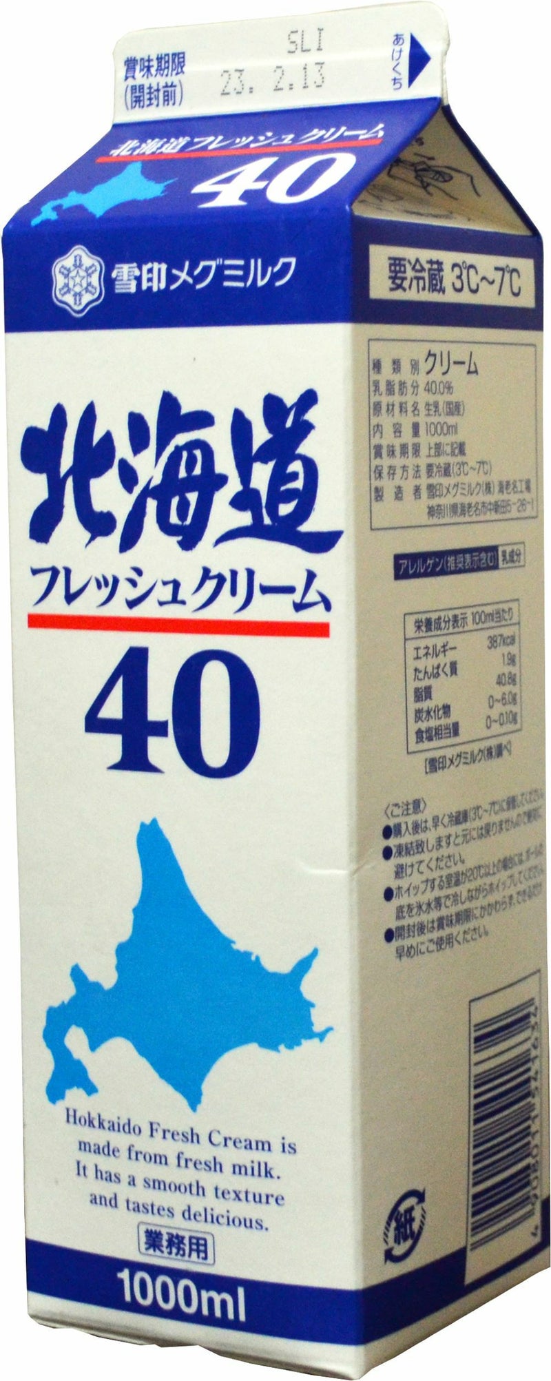 北海道産生乳から大切に作った、乳のコクと豊かな風味を 備えた純乳脂肪タイプの生クリームです。 容量 1000ml 製造者 雪印メグミルク㈱ 種類別 クリーム 成分 乳脂肪分 40.0% アレルギー 乳成分 エネルギー 387kcal(100gあたり) 原材料 生乳(国産)